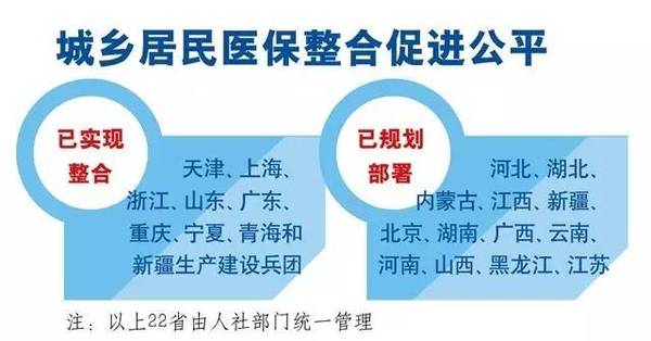 截至目前,31个省(区市)和新疆生产建设兵团出台整合制度相关文件,22个省份明确由人社部门统一管理。城乡居民医保制度的公平性显著增强。