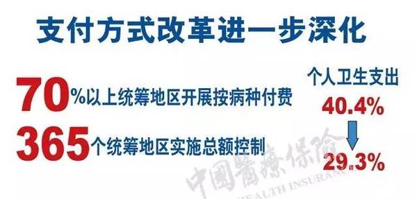 全国开展职工医保付费总额控制的统筹地区为365个,超过70%的统筹地区开展了按病种付费。个人卫生支出占卫生总费用比重持续下降,由2008年的40.4%下降到2015年的29.3%。