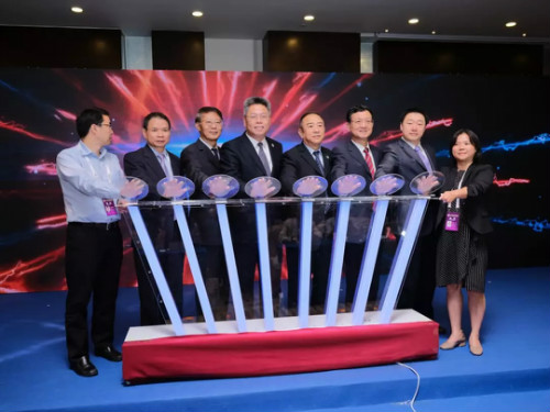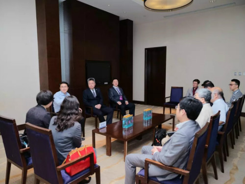 左起:唐兴伦区长、郑劲平教授、李岷副主任、王世杰副省长、张群山副主任、陈敏副主席、赵韡市长助理、马敏董事长