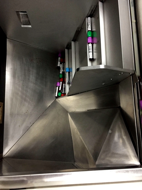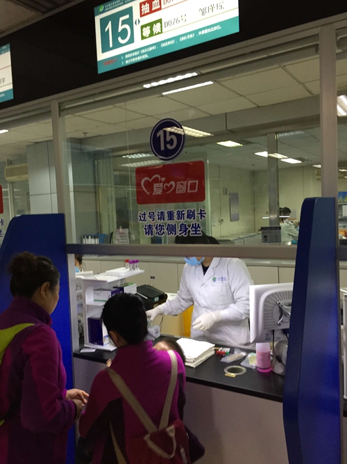 据了解,这套新的全自动智能化采血系统启用后,采血者只需携带身份证或就诊卡,在采血取号机上刷卡取号,智能系统立即将获取的采血者姓名、检查内容等信息打印出带有条形码标签,粘贴在试管上,自动分配到某个采血窗口上。然后,系统会通过大厅的显示屏,并广播采血者在几号窗口采血。