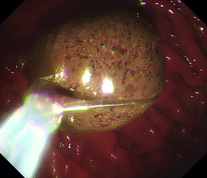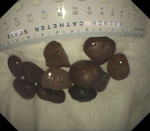 近日,北京友谊医院消化内镜中心主任医师俞力为年过花甲的薛先生从胃内顺利取出直径约3-4厘米的鹅卵石11枚。