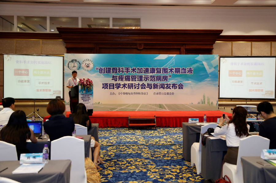 加速康复外科是指应用已有循证医学证据支持的一系列围术期优化处理措施,减少手术创伤应激、降低并发症,使患者获得加速康复,并减少医疗费用。外科手术患者常常担心手术切开肌体后的疼痛与出血。骨科手术又是出血多,创伤应激反应大,疼痛剧烈的手术。骨科手术加速康复的内容包括:术前患者宣教与充分沟通、术前预康复、缩短禁食禁饮时间,短效麻醉,限制性输液,减少用药,微创操作,减少出血,减少管道,早期进饮食,早期下床,预防性镇痛,监测不良反应与预防,逐步达到“无血、无痛、无应激、无风险”以及“无栓、无感、无肿、无管、无吐、无带”的质量顶峰。骨科手术加速康复的关键和需要做好的两个问题是围术期血液与疼痛管理,要做到减少创伤应激,减少失血和疼痛,达到加速康复的目标。旨在进一步改进骨科手术优化微创化操作和优化围术期管理,减少并发症,提高医疗质量和患者手术安全性,并积极推动加速康复理念在中国骨科手术的发展与实施。