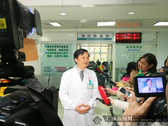 广西壮族自治区人民医院常务副院长林辉接受媒体采访。广西新闻网记者 黄勇椋 摄