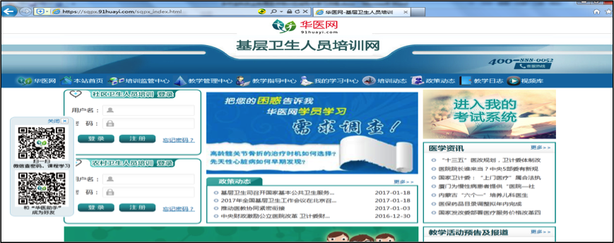 1、登录“基层卫生人员培训网”(https://sqpx.91huayi.com)。