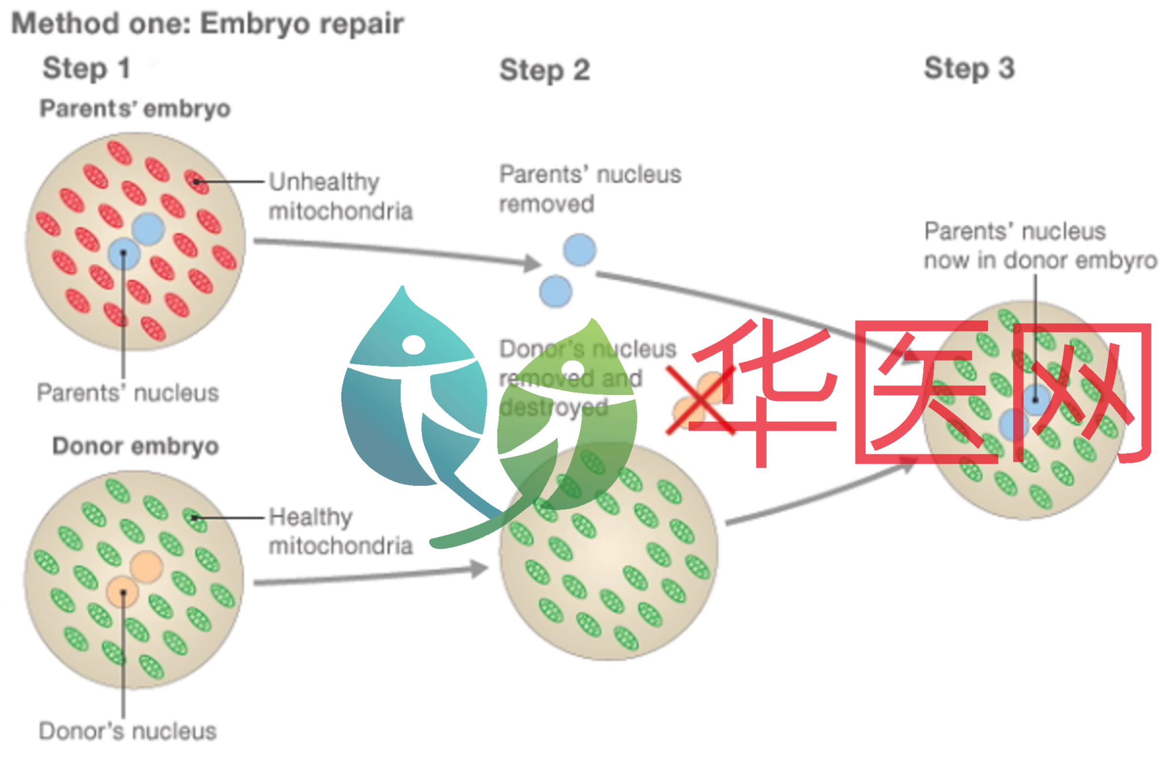 线粒体只经过母婴遗传,如果母方的这部分基因中若存在缺陷(例如身患肌肉萎缩症),就会将其遗传给下一代。而“线粒体替换”疗法能够借助第三方基因来修补母方基因中的缺陷,从而帮助下一代规避遗传疾病。