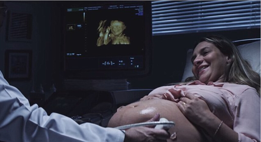 用手感受到未出世的孩子的样子,她激动得热泪盈眶。
