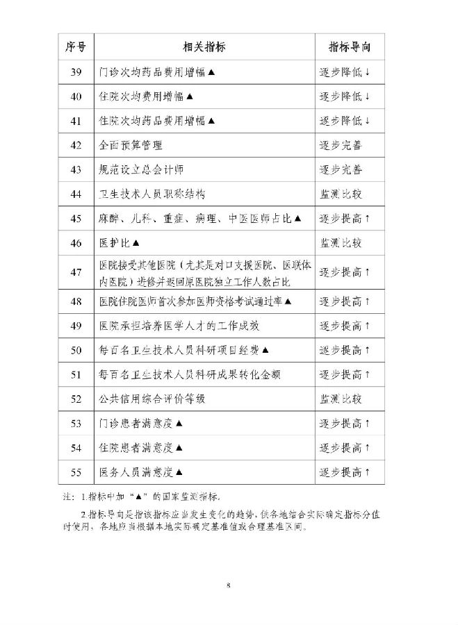 针对55个三级指标,国家卫健委提出了逐步提高、逐步降低与监测比较三种导向。