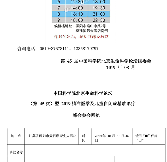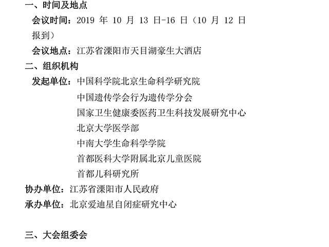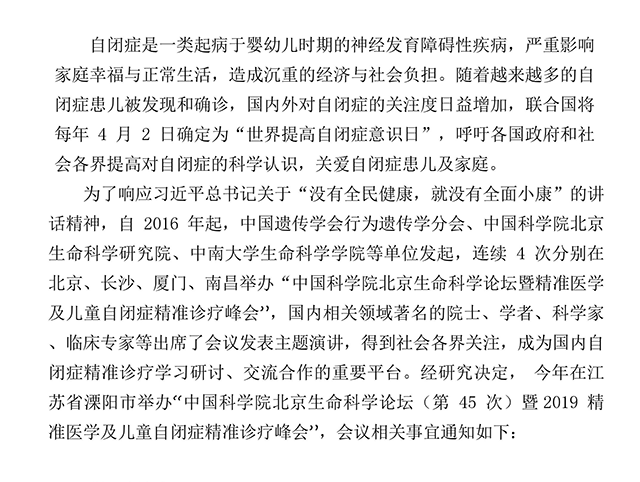 中国科学院北京生命科学论坛(第45次)暨 2019 精准医学及儿童自闭症精准诊疗峰会(第二轮)会议通知