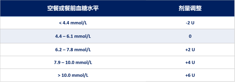 转换方法【3】:将基础胰岛素日剂量等量转换,并1:1分配于早、晚餐前,后续根据血糖情况进一步调整剂量。