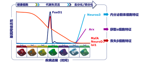 图1. T2DM进展中,β细胞去分化,转化为内分泌前体细胞或其他类型细胞