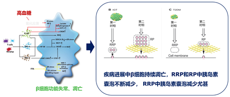 针对这一病理变化,常见的处理方式是延缓β细胞衰竭和模拟早相分泌,即“促泌”和“补充”。1)胰岛素促泌剂基于刺激胰岛素分泌机制改善早相分泌,包括磺脲类、肠促胰素等8,但由于对本就“负荷沉重”的β细胞进行持续刺激,反而可能加速β细胞衰竭。研究显示,磺脲类药物使胰岛β细胞凋亡增加了近3倍9。2)补充外源性胰岛素可一定程度改善β细胞胰岛素分泌受损情况,使β细胞充分休息,但仅能通过RP胰岛素囊泡转换作用于早相胰岛素分泌,不能完全为早相胰岛素分泌赋能6,7。