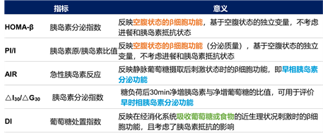 图3. 临床研究中常用的β细胞功能评估指标及意义